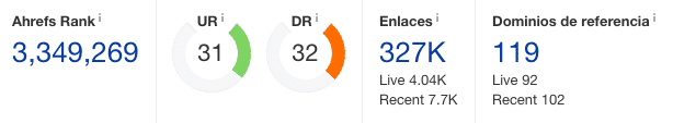 Este caso es excepcional, pues tuvo un crecimiento en tan solo 6 meses, donde la autoridad de dominio pasó de 32 a 44; los dominios de referencia pasaron de 119 a 466 y pasó de 327.000 enlaces a 45.400.
