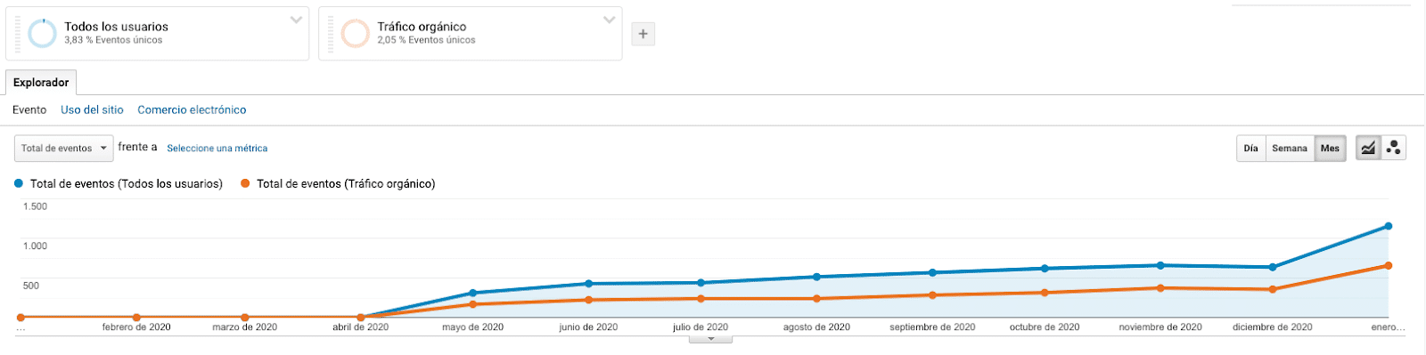 De los 1.554 envíos de formularios, 656 envíos provienen de visitas orgánicas.