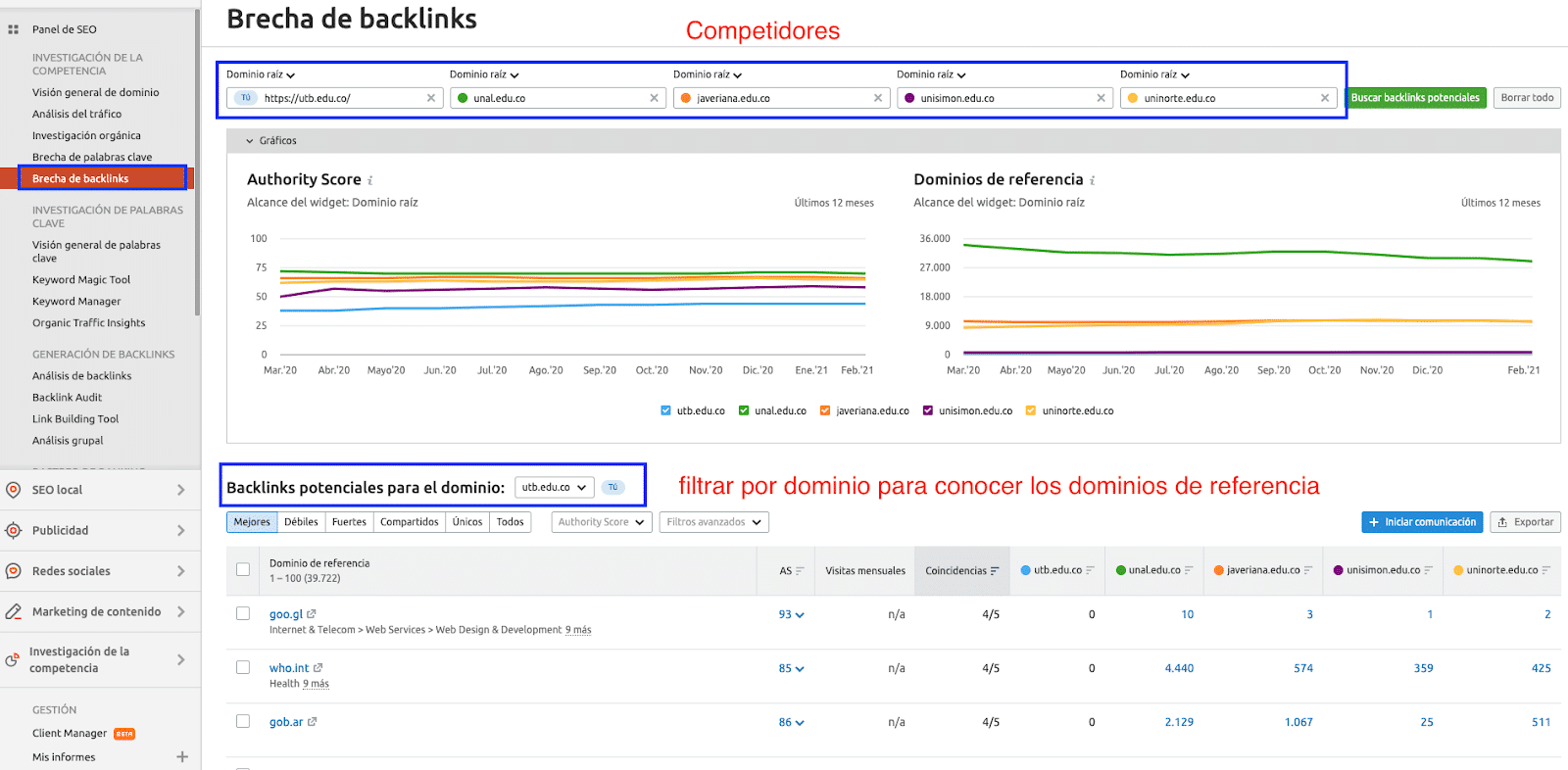 Luego de tener el listado, será indispensable conocer aquellos enlaces más relevantes que presenta la competencia, de la mano de Semrush